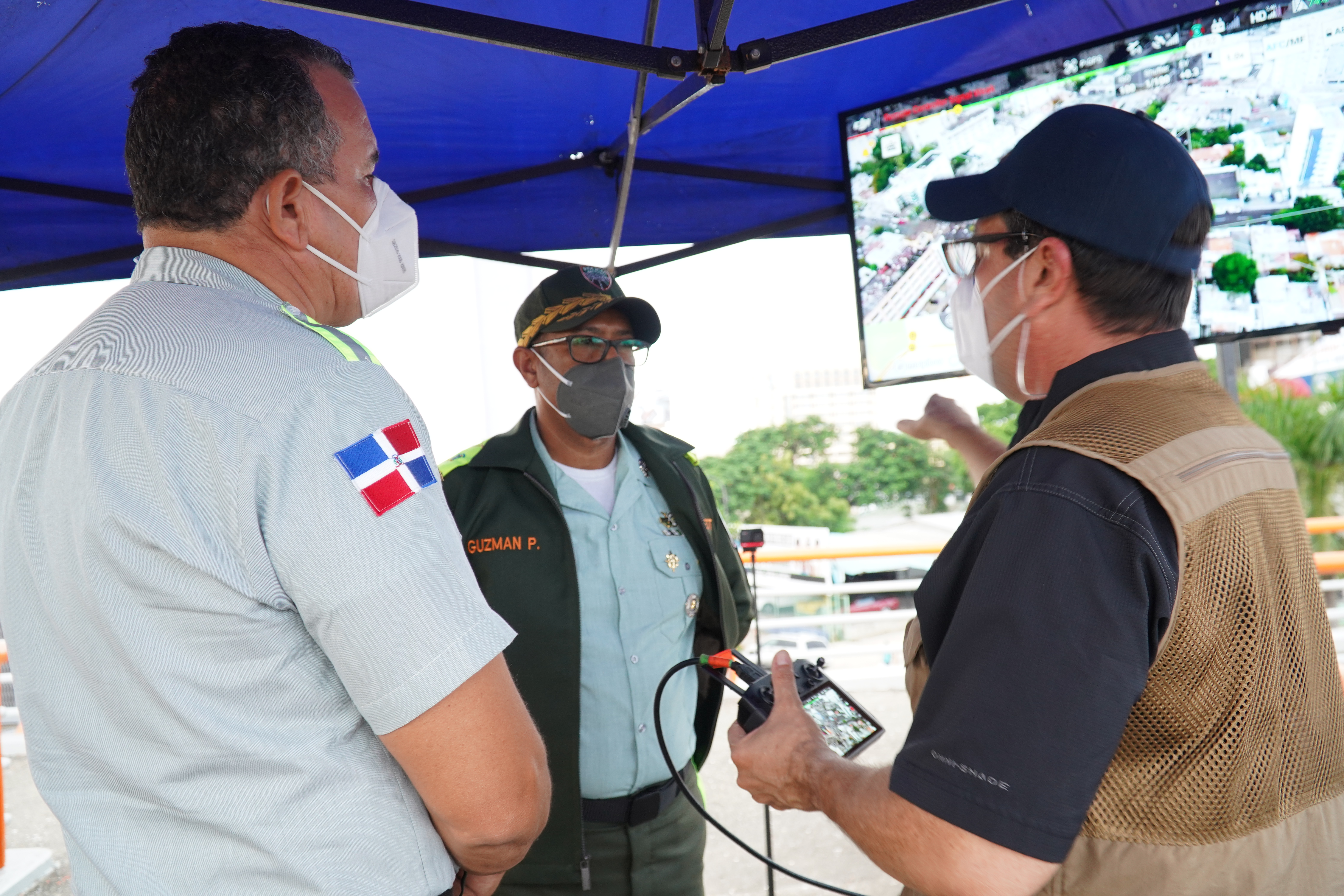 Los expertos en el manejo del flujo vehicular establecieron un centro de operación por el día de ayer, en el puente peatonal, ubicado en el elevado de la Máximo Gómez esquina 27 de Febrero, donde manipulaban los drones hacia distintos puntos de la ciudad. Mediante un sistema de pantalla o monitor observaban los lugares donde se producen los congestionamientos vehicular y que los provoca.